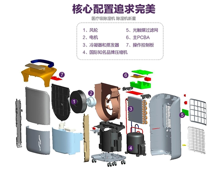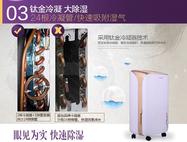 ◎國際品牌壓縮機(jī),性能穩(wěn)定,除濕效果持久、強(qiáng)勁
